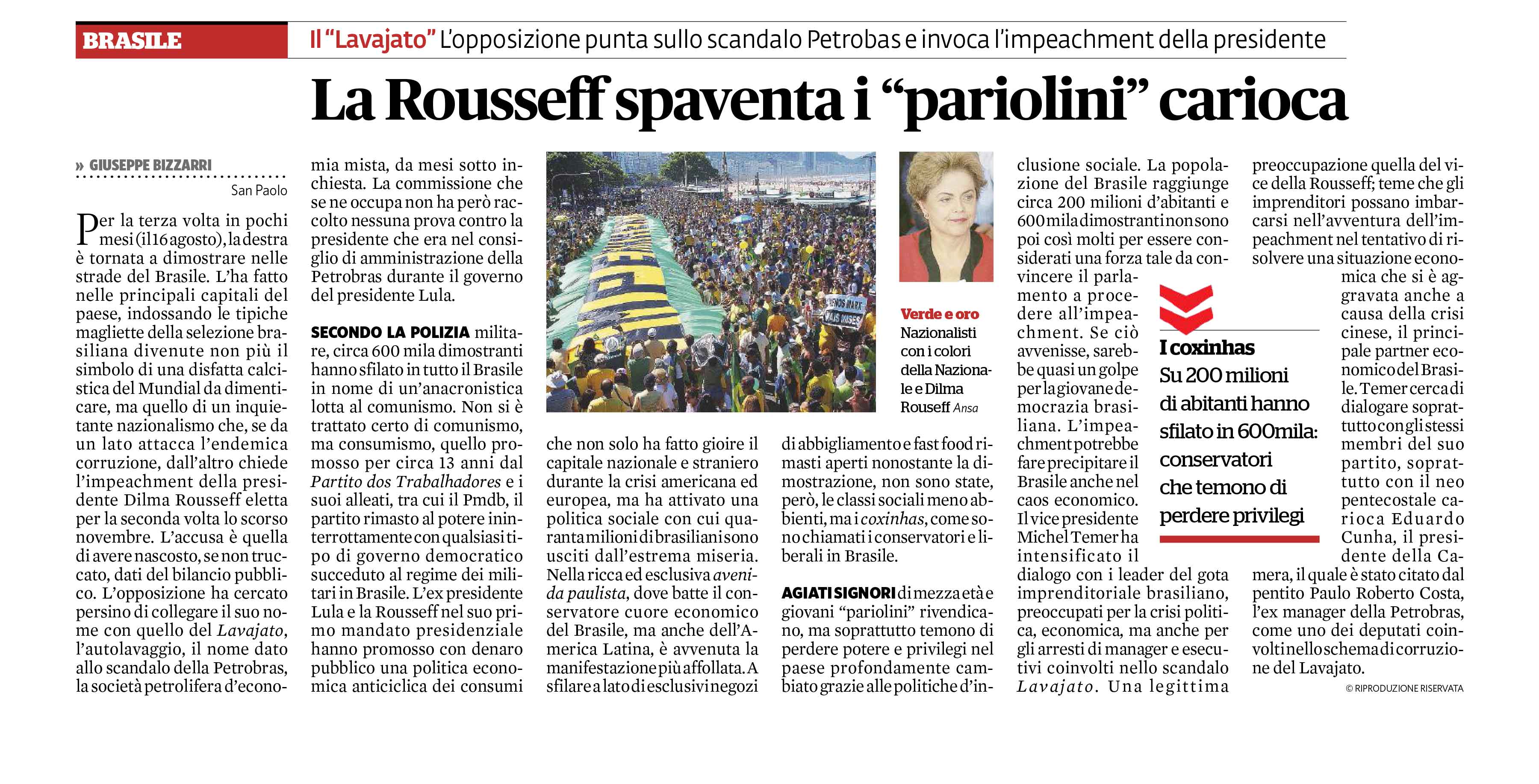 Il mercato della finanza non teme lavajato. Nonostante la crisi delle esportazioni delle commodity e lo scandalo, la Petrobras ha quasi recuperato le perdite azionarie accumulate ed hanno fatto guadagnare ingenti lucri agli investitori, soprattutto gli speculatori, tra cui George Soros, il quale nei giorni scorsi ha rivenduto l’intero azionario in suo possesso della statale brasiliana, dopo averlo acquistato in netto ribasso nel 2014, quando le agenzie di rating, soprattutto quelle americane, dicevano di disfarsi delle azioni della petrolifera.