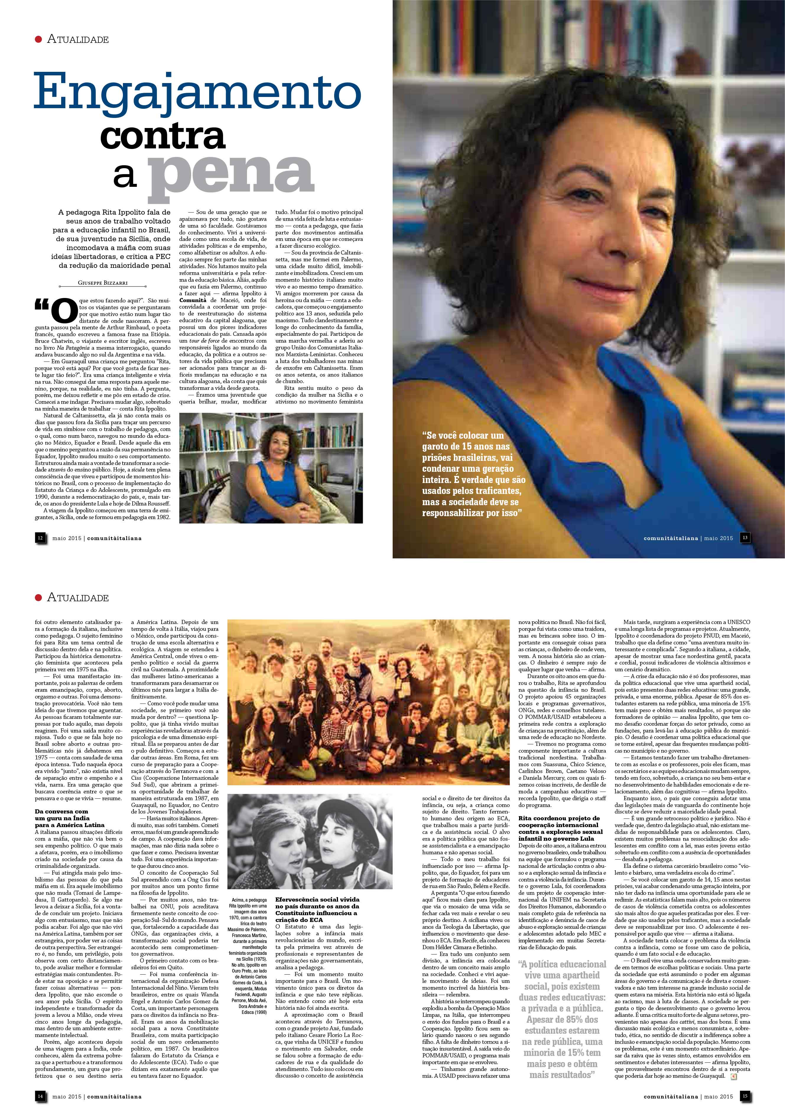 A pedagoga Rita Ippolito fala de seus anos de trabalho voltado para a educação infantil no Brasil, de sua juventude na Sicília, onde incomodava a máfia com suas ideias libertadoras, e critica a PEC da redução da maioridade penal.