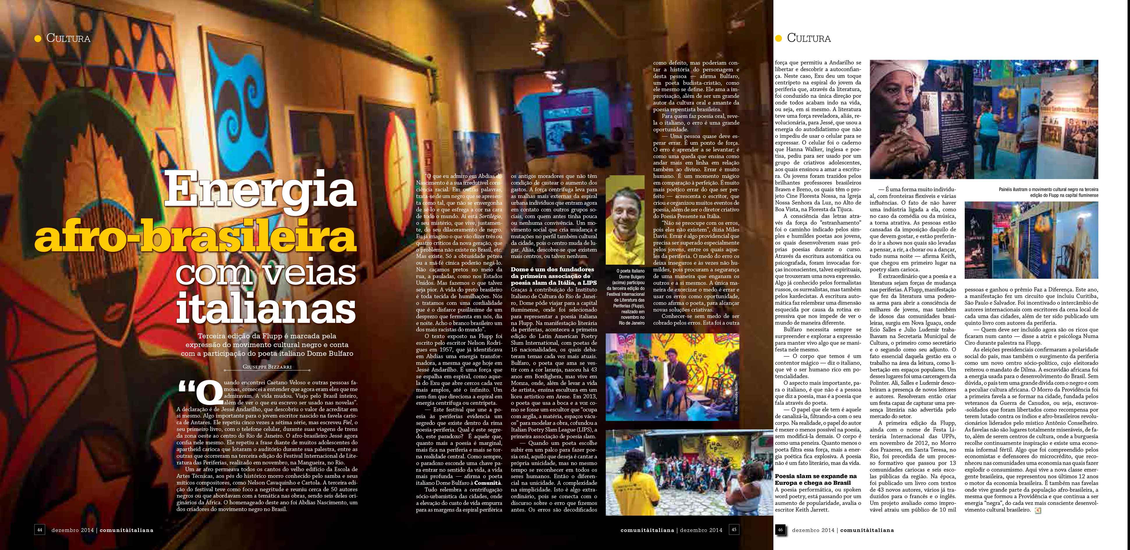 Terceira edição da Flupp é marcada pela expressão do movimento cultural negro e conta com a participação do poeta italiano Dome Bulfaro